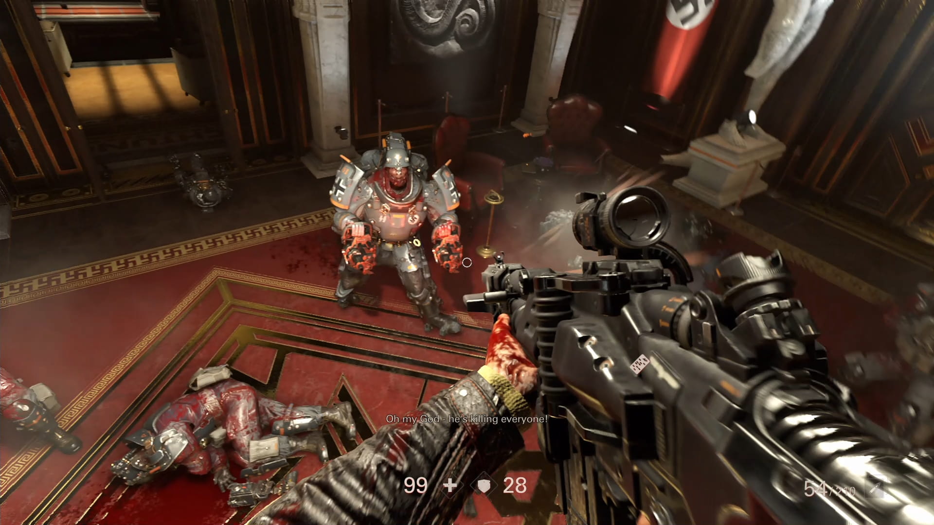 Игроков ждет кинематографичный сюжет с безумными поворотами и запредельным уровнем жестокости. Геймплей – это мясо: в каждую руку можно взять по пулемету или дробовику, а после расстрела добить врага топором. Чтобы убивать нацистов еще зрелищнее, собирайте улучшения и открывайте новые способности. Вас ждет жесткое приключение в духе классических шутеров.
