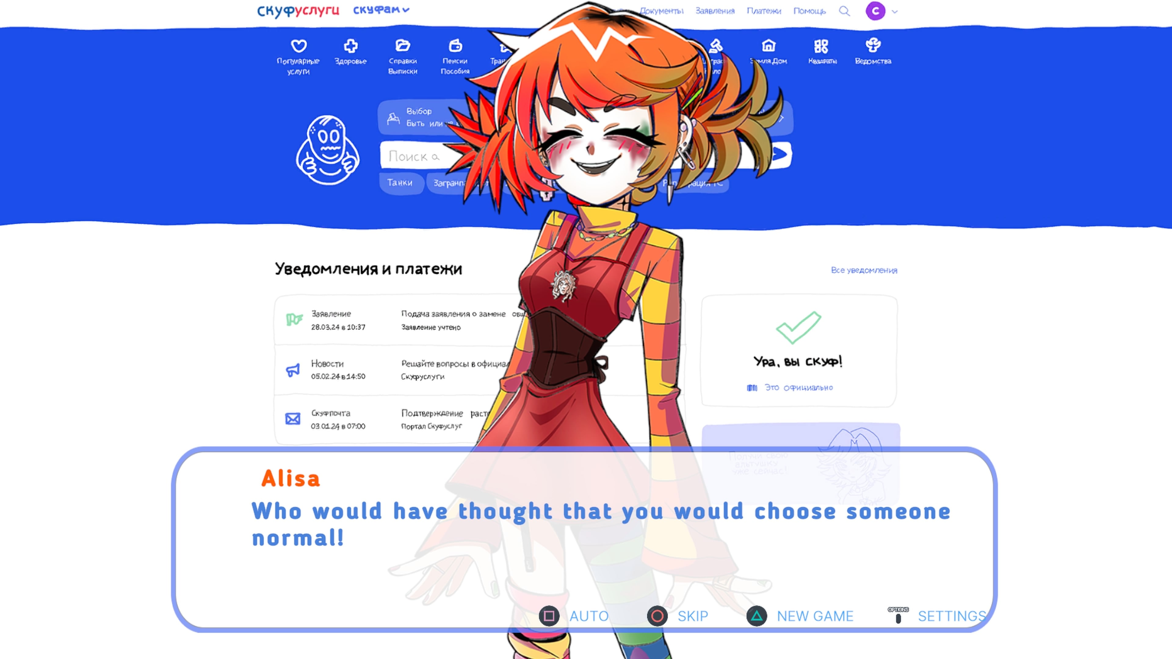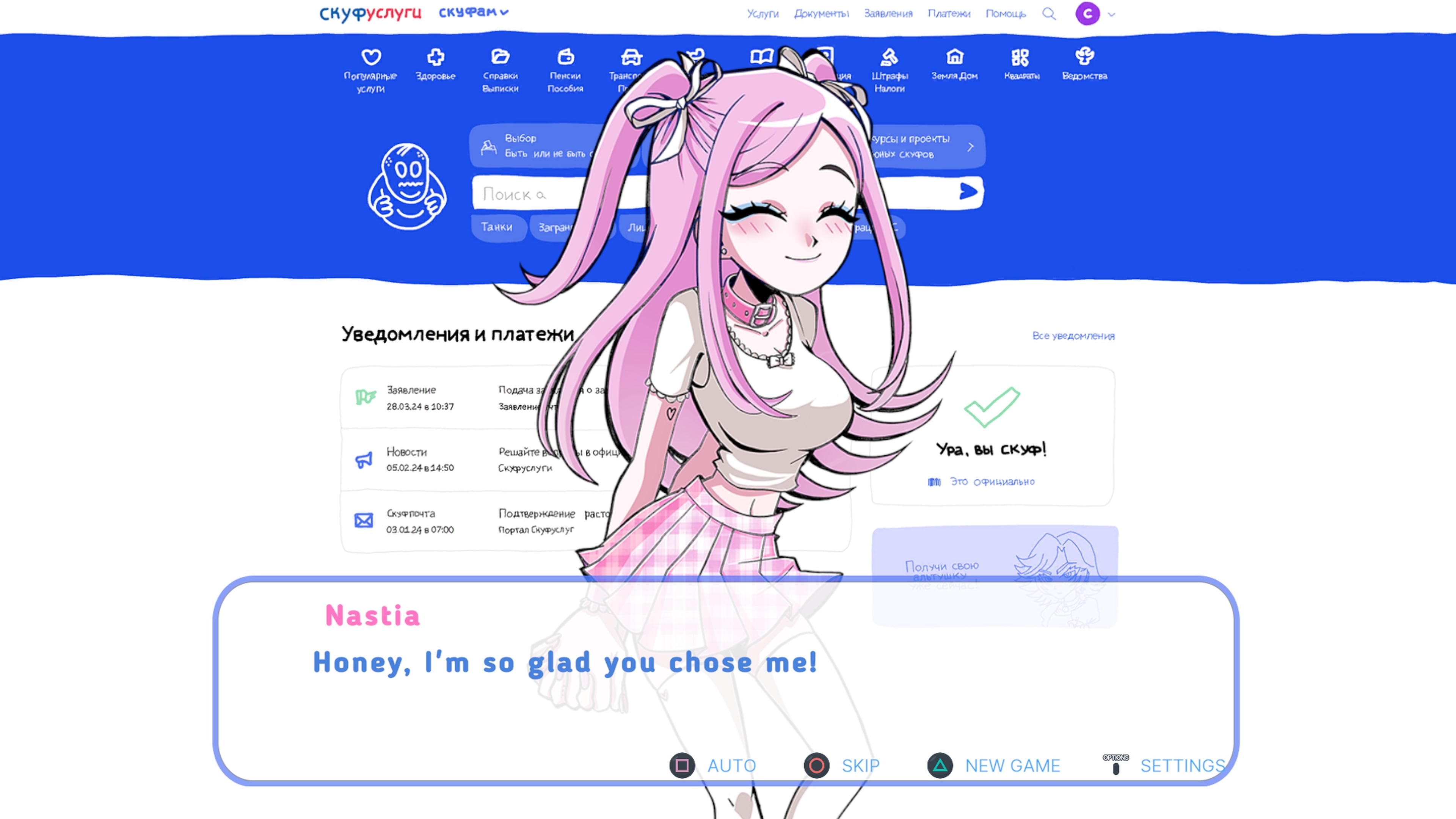 Захватывающий симулятор скуфа в формате визуальной новеллы.